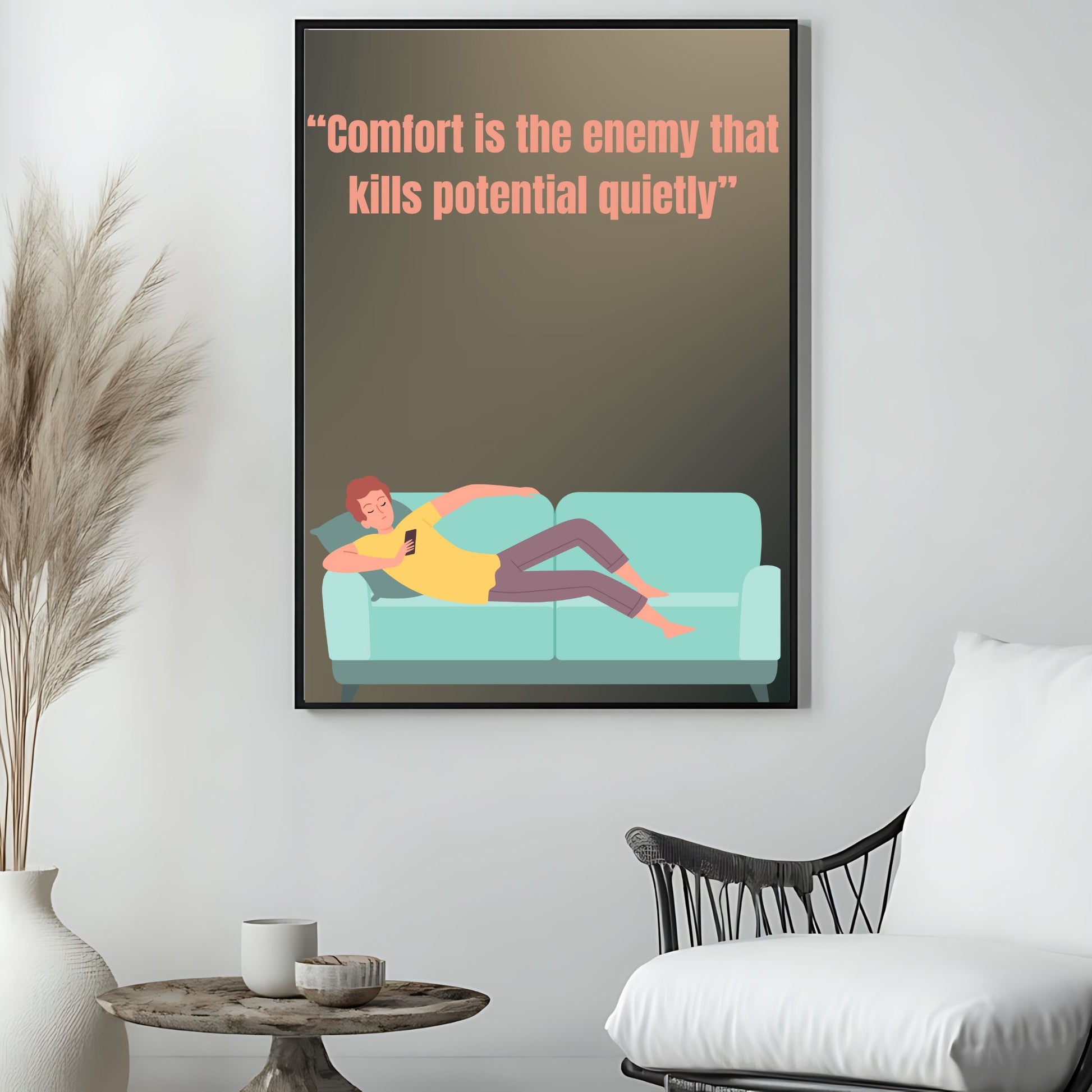 " Comfort is the enemy that kills potential quietly" - Motivational digital poster.