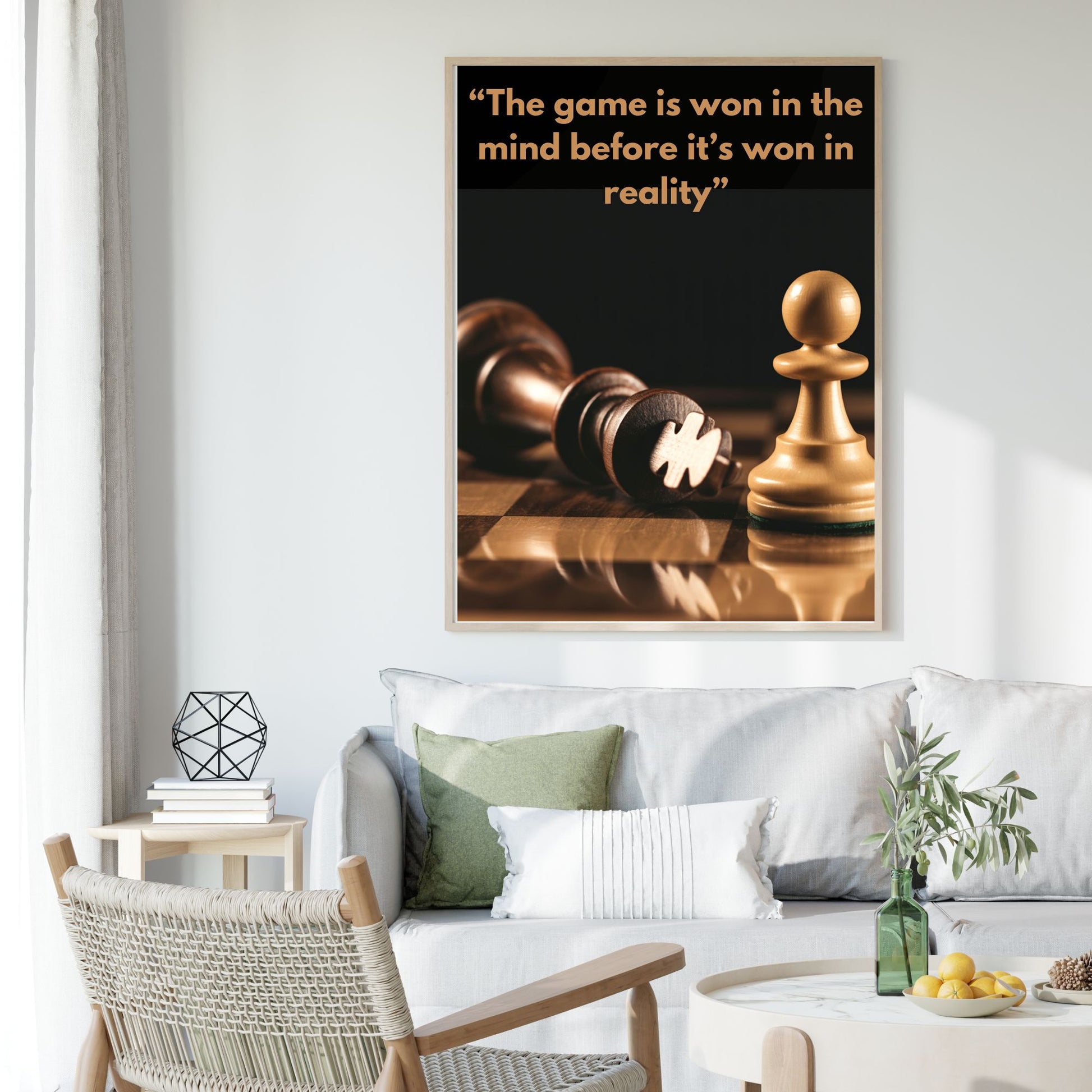This motivational digital poster is designed to inspire focus, strategy, and success, featuring a striking chessboard visual with a pawn casting a king’s shadow. Perfect for offices, studies, or workspaces, this motivational digital poster reminds you that victory begins in the mind. Instantly downloadable, this high-quality motivational digital poster can be printed in multiple sizes to enhance any environment. Use this motivational digital poster daily to strengthen your mindset, boost determination, and encourage perseverance. Transform your space with a motivational digital poster that motivates action, strategy, and achievement. Elevate your environment with this impactful motivational digital poster.